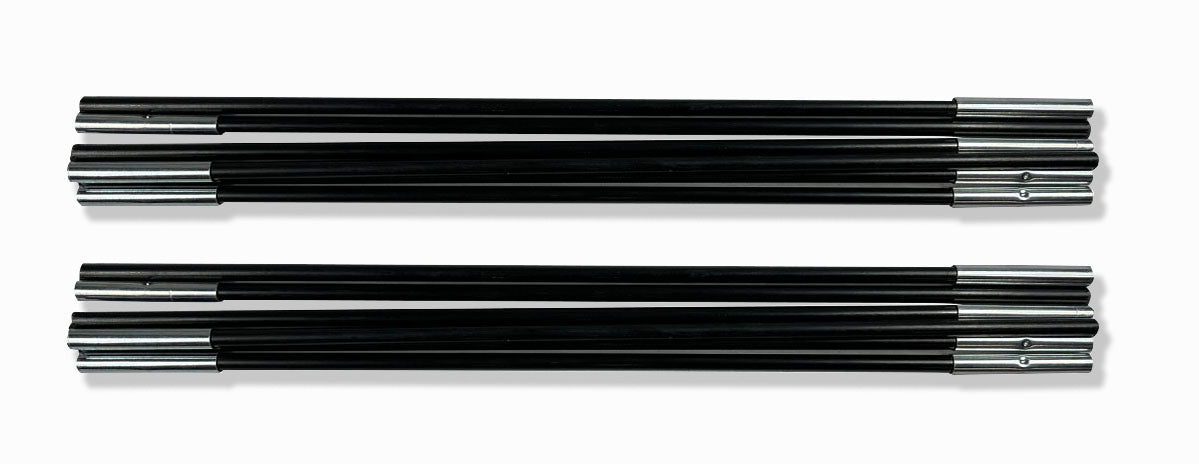 It contains 1 Black coded fibreglass long pole which consists of 8 x 6.9mm pole sections with two angled ferrules and a total length of 196cm approx and 1 black coded fibreglass short pole which consists of 6 x 6.9mm pole sections with two angled ferrules and a total length of 118cm approx. Each tent pole run will come pre-strung and ready to use on your tent.