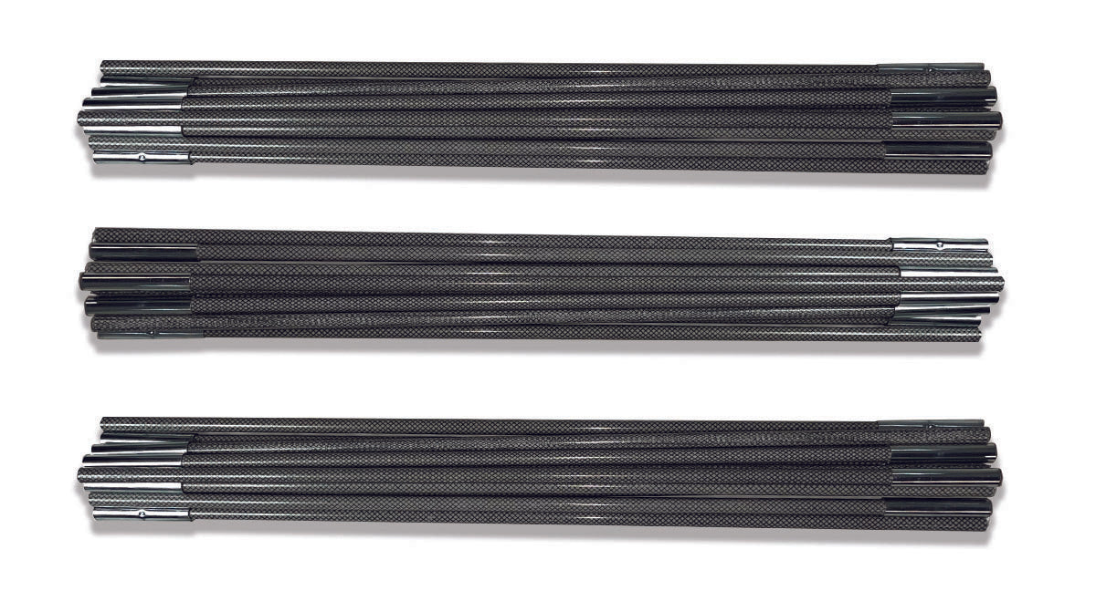 It contains 2 x Black Coded durawrap pole runs each consists of 11mm pole sections with a total length of 580cm approx and 1 x Red Coded durawrap pole runs which consists of 11mm pole sections with a total length of 530cm approx. Each pole run will come pre-strung and ready to use on your tent.