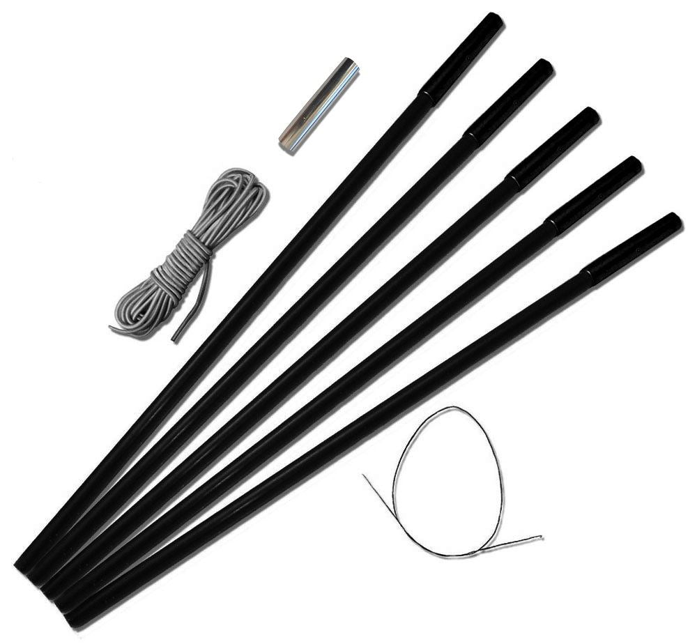 Includes 5 Pole Sections, a spare ferrule/connector, length of elastic (4m long, stretching to 7m) and a threading tool to make repairing your tent poles easy.