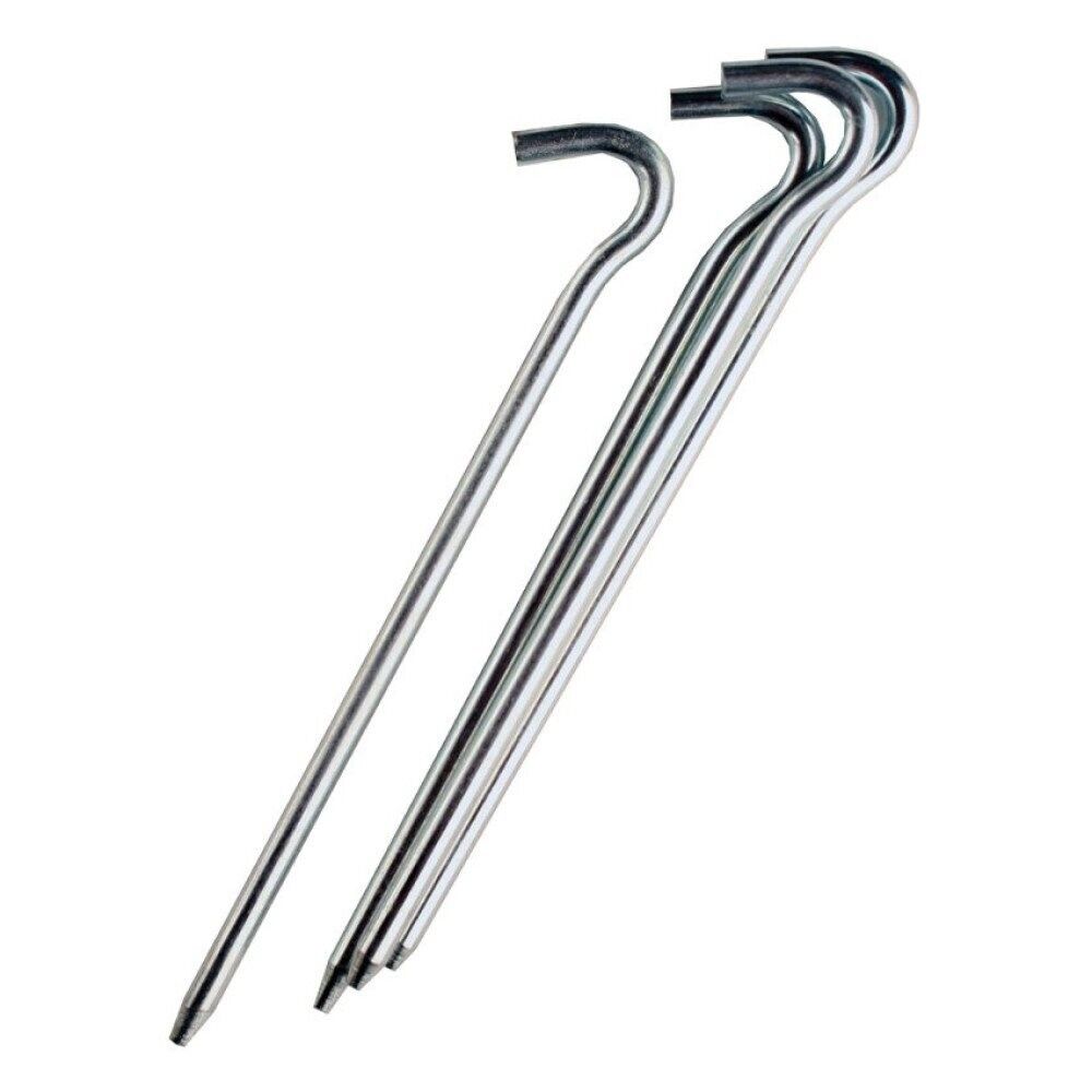 Each tent peg size is 19 cm x 7 mm with a curved hook head for ease of pitching.